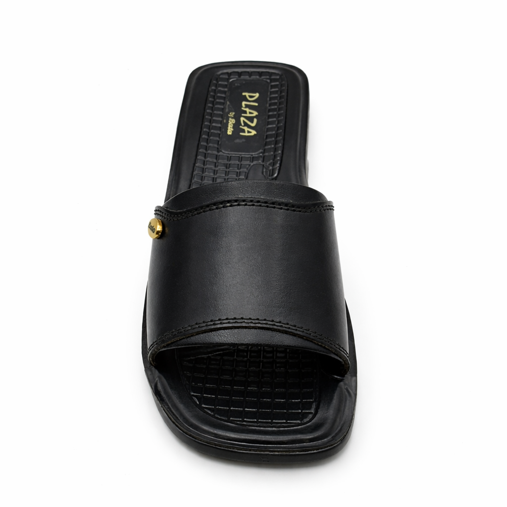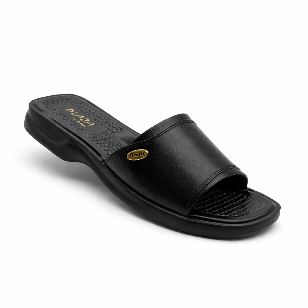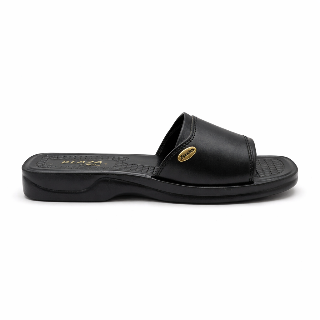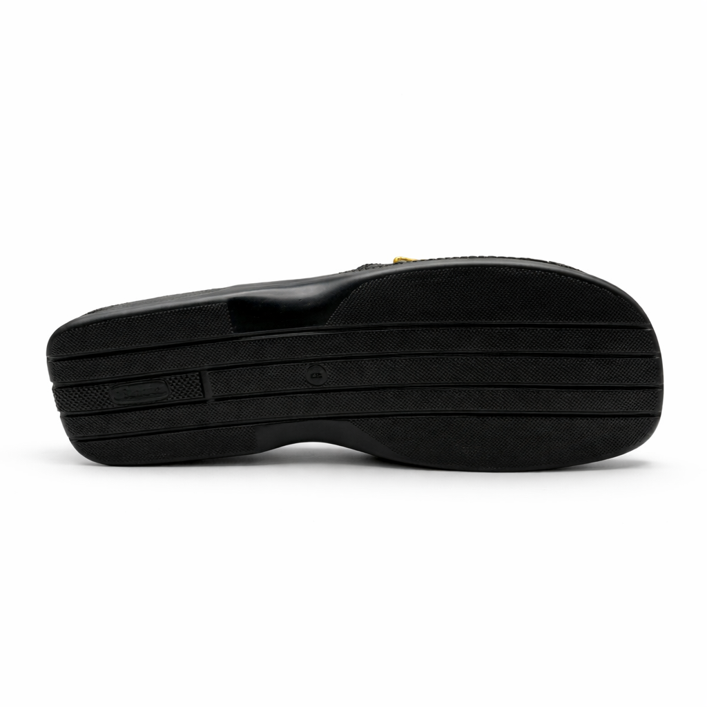 This men’s casual slide slipper is designed for simple style and all day comfort. It features a smooth black upper with a wide single strap that provides a secure and relaxed fit. The cushioned footbed is textured to enhance grip and comfort while walking. Its slightly elevated sole offers better support and reduces foot strain during regular use. Easy to wear and lightweight, this slipper is ideal for home, casual outings, and everyday wear, delivering a clean and practical look with lasting comfort.