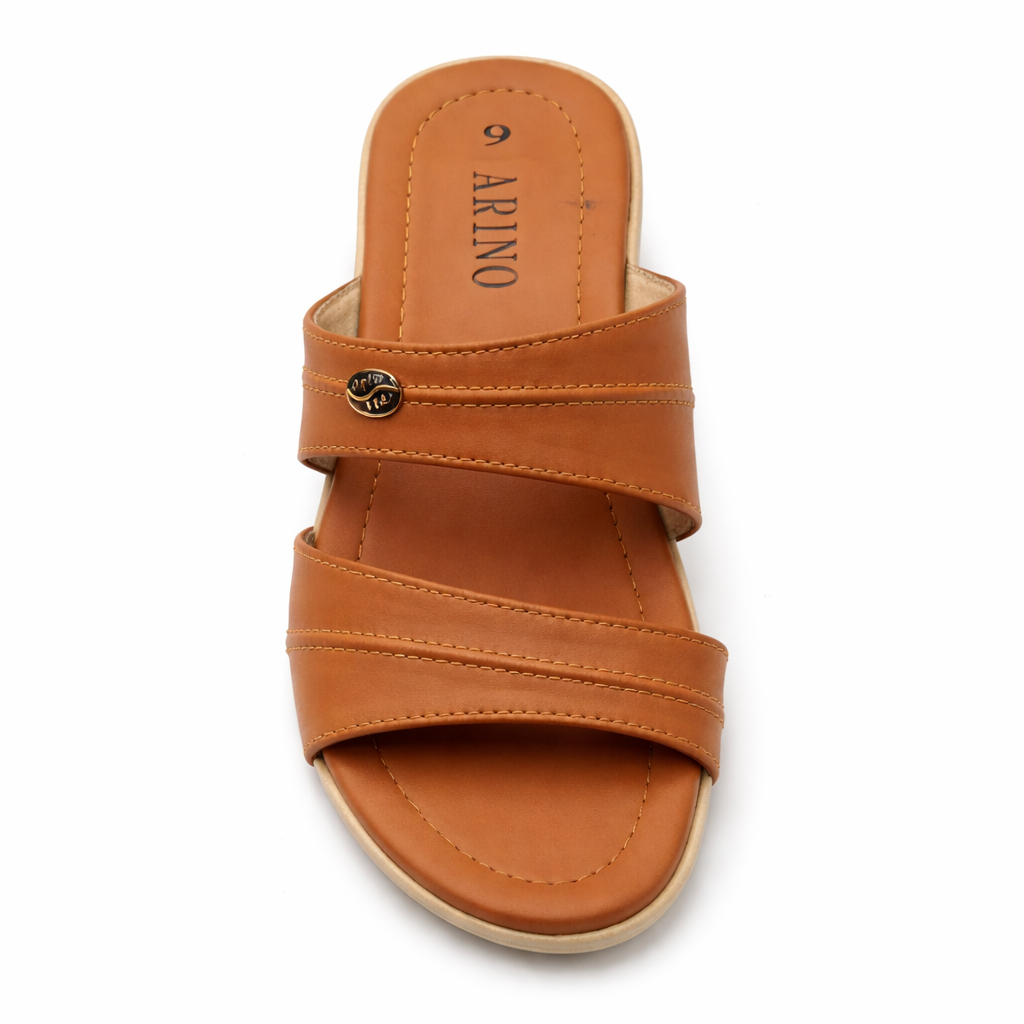 Step into everyday comfort with these elegant Arino women’s  Designed with a classic dual strap slip on style, these chappal combine simplicity with durability, making them ideal for daily wear. The smooth leather upper offers a soft feel against the skin, while the neatly stitched straps provide a secure and comfortable fit.