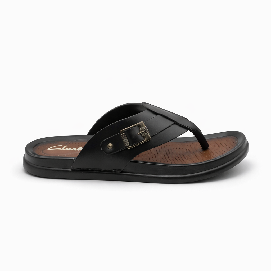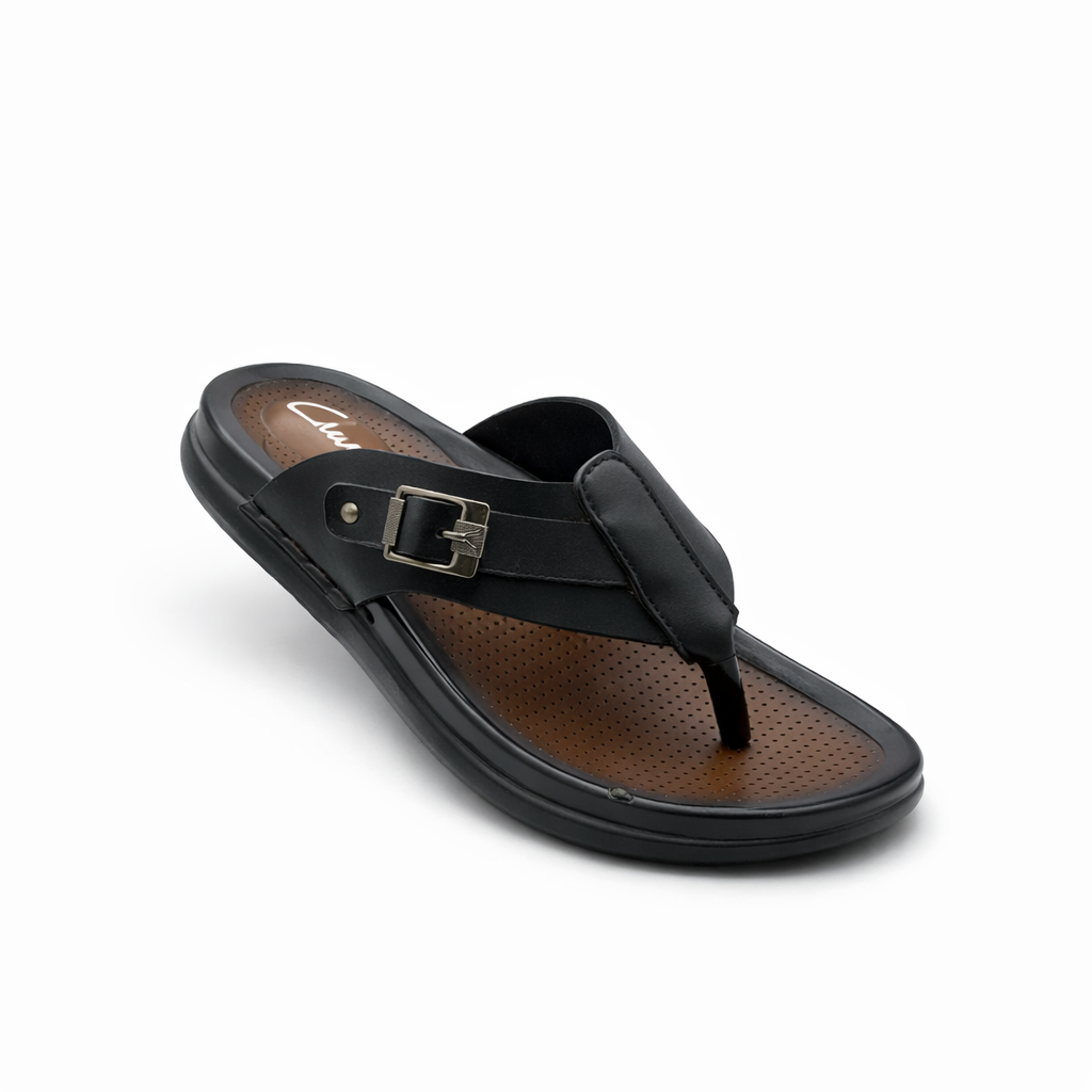This toe post comfort slipper is designed for everyday ease and support. It features a soft and durable upper with an adjustable buckle strap for a secure and personalised fit. The cushioned footbed includes breathable perforations to enhance comfort during extended wear. A sturdy sole provides reliable grip and stability, making it suitable for daily indoor use and light outdoor wear. The simple and practical design makes it ideal for regular casual use.