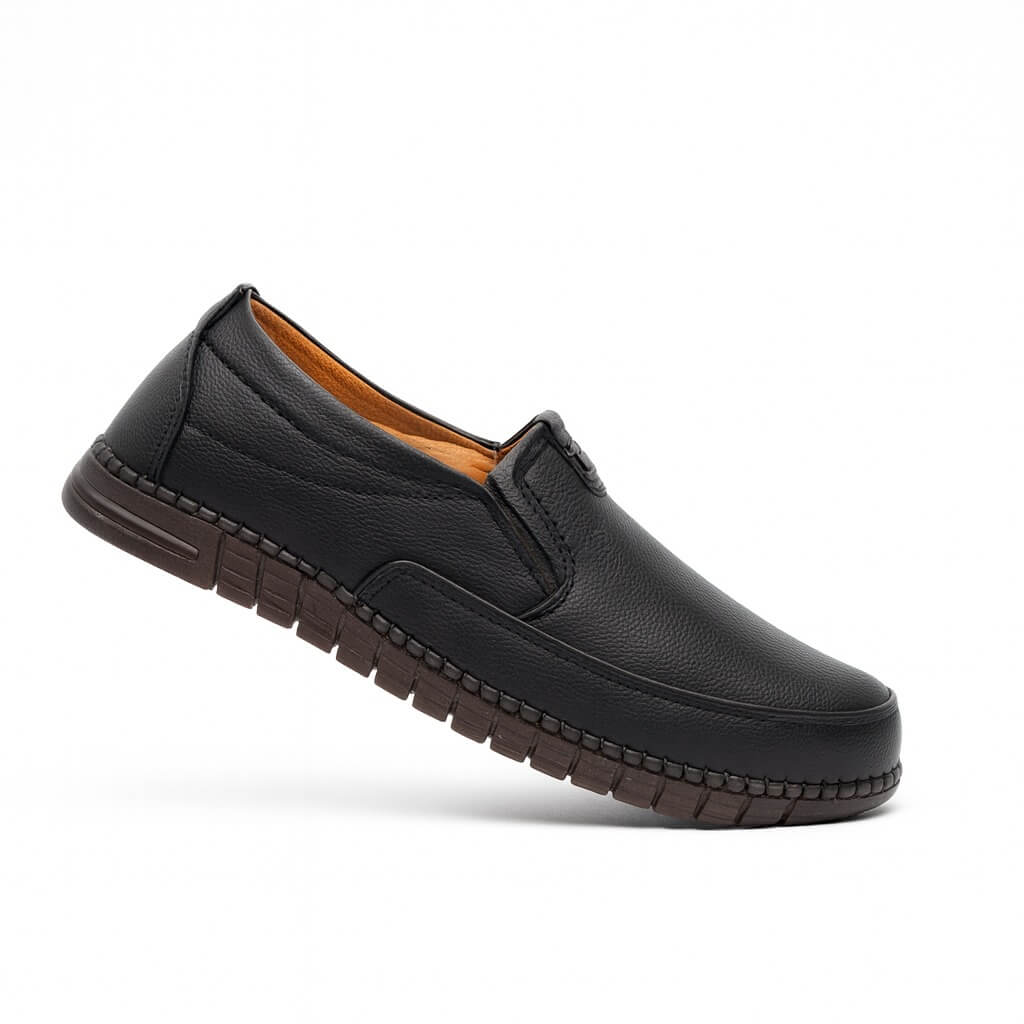 This stylish slip-on shoe is designed for everyday comfort and durability. Crafted from high-quality synthetic leather with a textured finish, it offers a polished look suitable for both casual and semi-formal wear. The soft inner lining ensures a comfortable fit throughout the day, while the flexible, anti-slip rubber sole provides excellent grip and support on different surfaces.