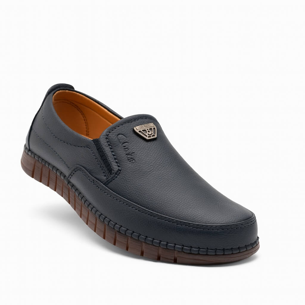 Its hand-stitched detailing along the edges adds a premium touch, and the elastic side panels make it easy to wear and remove without compromising fit. Finished with a metallic brand emblem on the upper, this shoe blends elegance with practicality, making it a great choice for daily use, office wear, or smart casual outings.