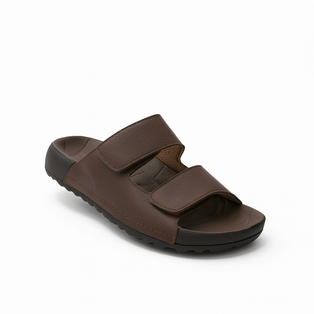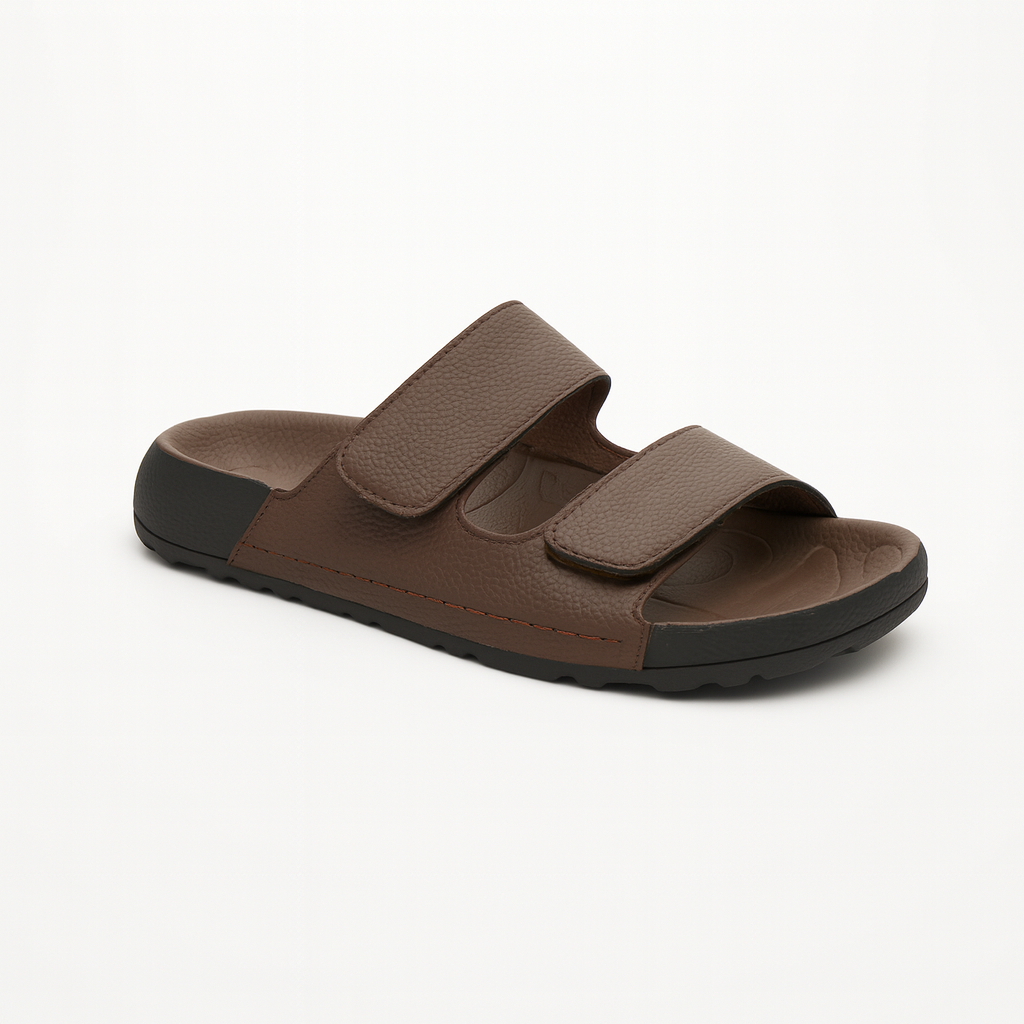 These dual strap ergonomic comfort slides are designed for maximum comfort and everyday ease. Featuring two adjustable straps for a secure and personalised fit, they provide excellent foot support throughout the day. The textured footbed offers cushioning and stability, helping to reduce foot fatigue.