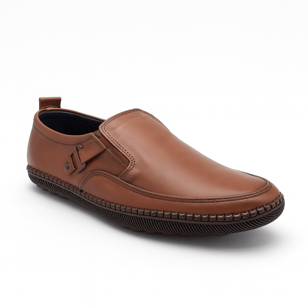 This premium slip-on shoe combines modern style with everyday comfort. Made from smooth, high-quality synthetic leather, it offers a refined and polished look suitable for casual outings and smart everyday wear. The shoe features a soft cushioned inner lining for superior comfort and a flexible rubber sole that ensures steady grip and durability. The side buckle-style detailing adds a unique, stylish touch, while the stitched edges enhance durability and craftsmanship. Designed for effortless wear, this slip-on is perfect for those who want comfort and style in one elegant pair.
