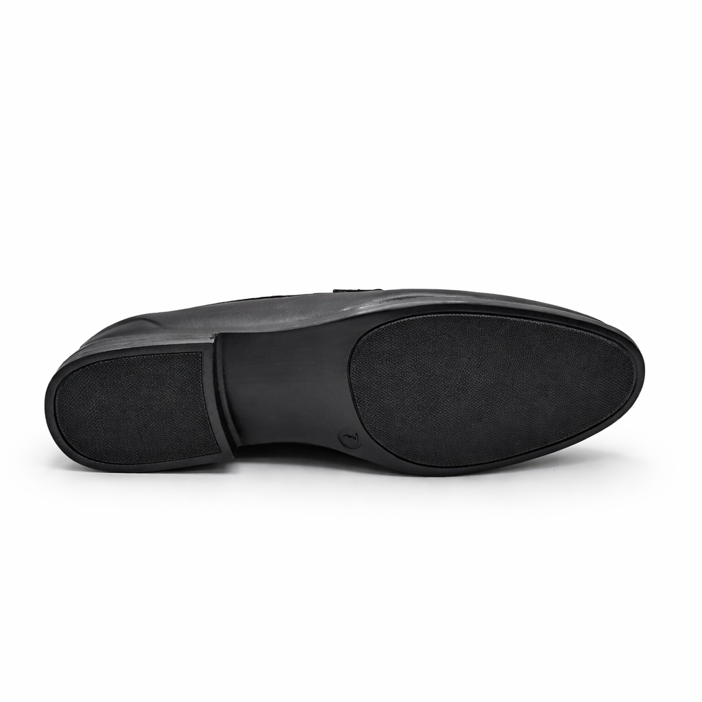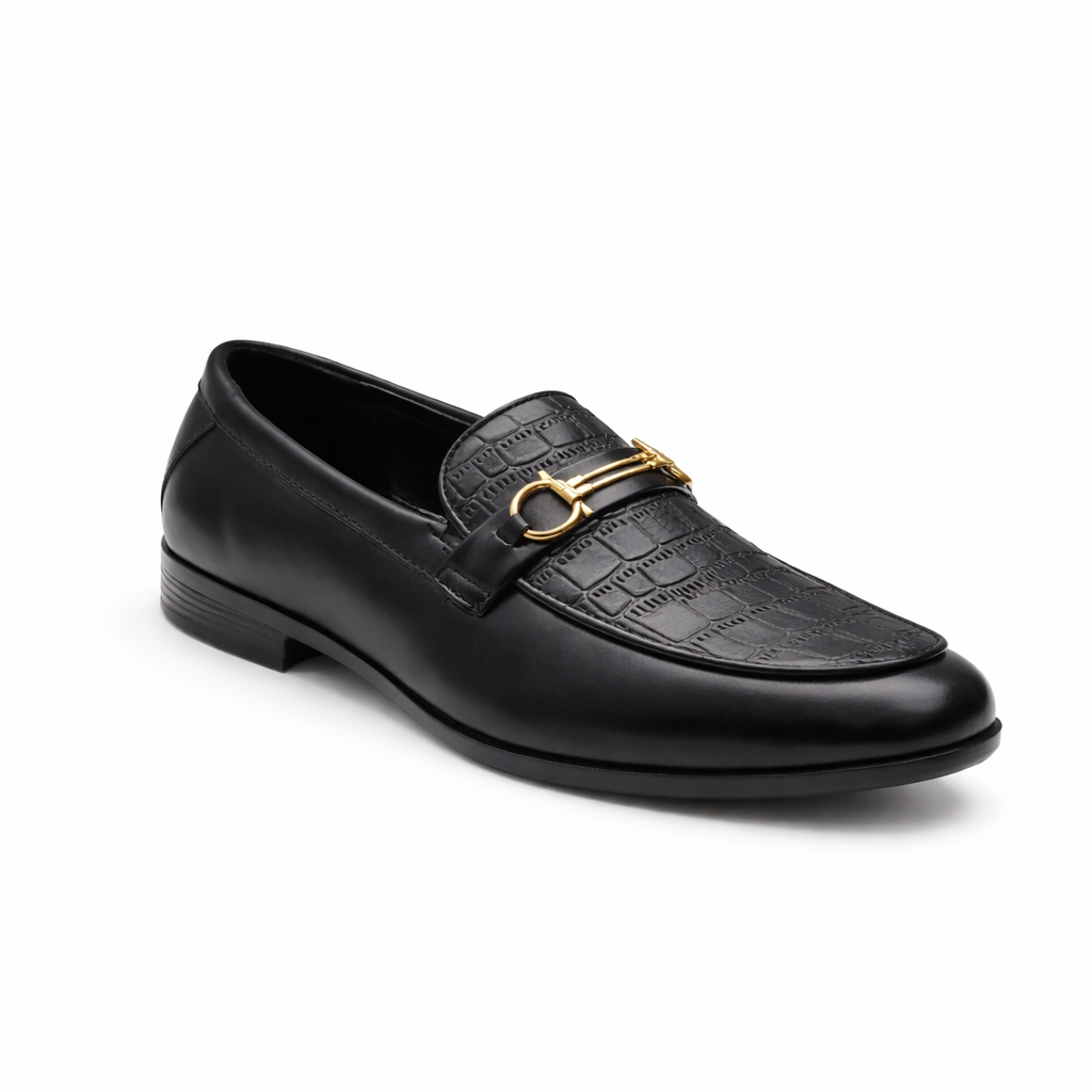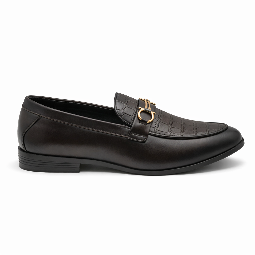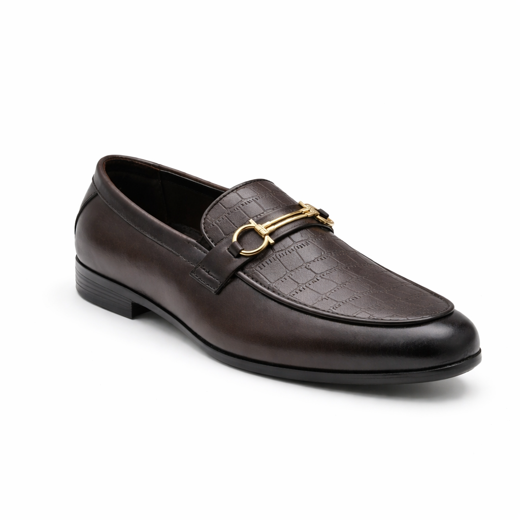 This men’s formal slip-on shoe is designed for a sharp and polished look, making it ideal for office wear and formal occasions. Crafted with a smooth leather upper and a refined textured panel, it features a stylish metal buckle detail that adds a touch of elegance. The slip-on design allows for easy wear, while the cushioned inner lining ensures comfort throughout the day. A durable sole provides stability and long-lasting performance, making this shoe a reliable choice for daily professional use.
